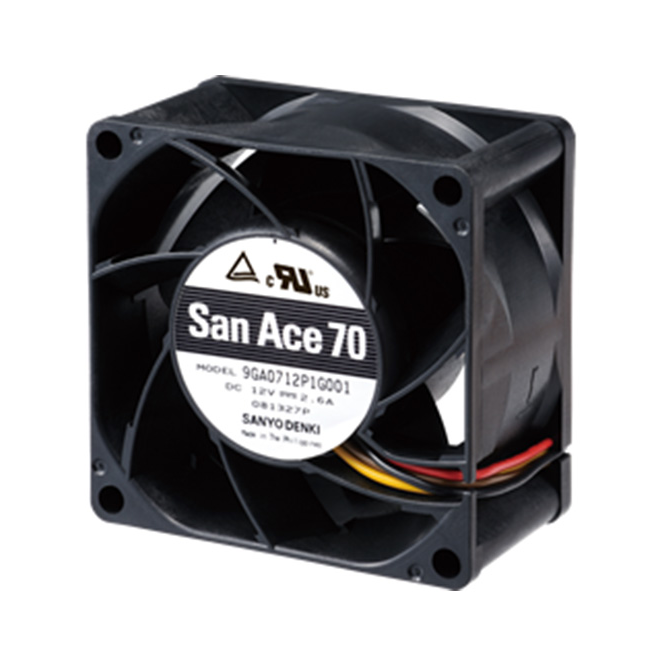 | DC Fan | 70×70×38 mm | 9GA0712P1G001 | 12 | 10.8 to 13.2 | 100 | 2.6 | 31.2 | 16500 | 2.65 | 93.6 | 860 | 3.45 | 65 | -20 to +70 | 40000/60˚C (70000/40˚C) |
